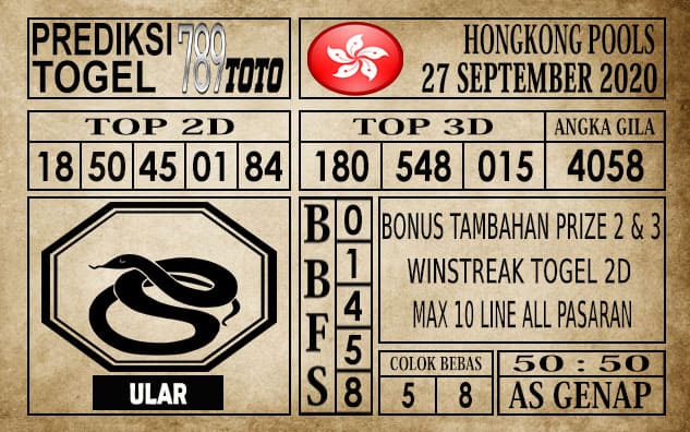 Prediksi Hongkong Pools Hari Ini 27 September 2020